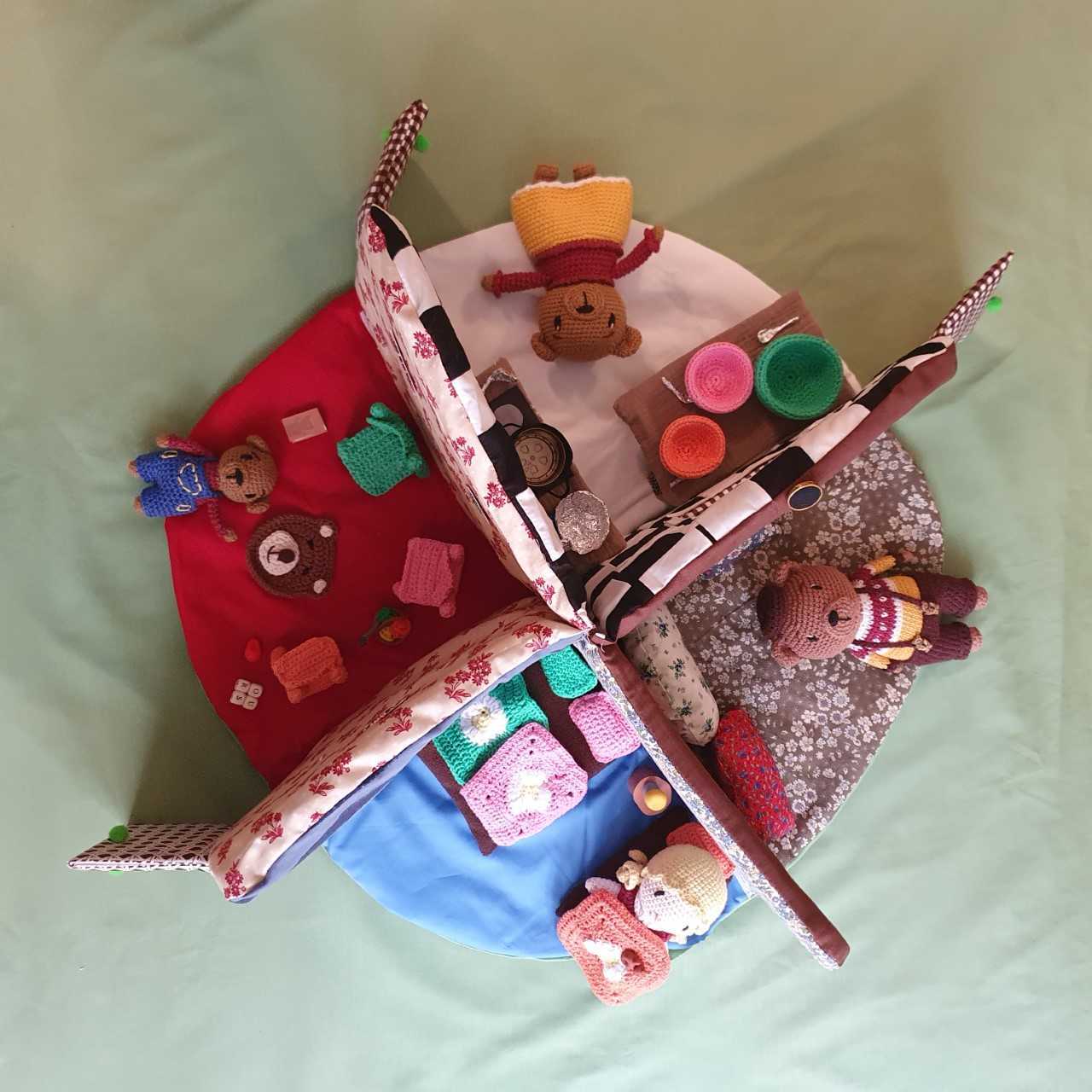 Venez écouter le conte lu à l'aide d'un tapis à histoires réalisé à la main.